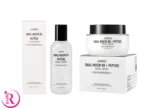 این ست با فرمولاسیونی غنی از موسین حلزون (Snail Mucin) و پپتایدهای جوانساز، پوست را آبرسانی، بازسازی و سفت میکند و به مرور چینوچروکها را کاهش میدهد.