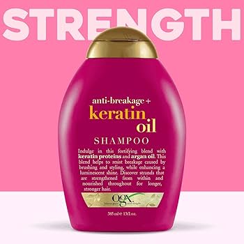 شامپو Keratin Oil او جی ایکس Ogx، حاوی پروتئین و کراتین است که قابلیت تقویت کنندگی دارد. روغن کراتین با نفوذ به تارهای مو، باعث بالا رفتن خاصیت کشسانی و در نتیجه افزایش مقاومت هر تار مو در برابر شکسته شدن یا موخوره می‌شود.