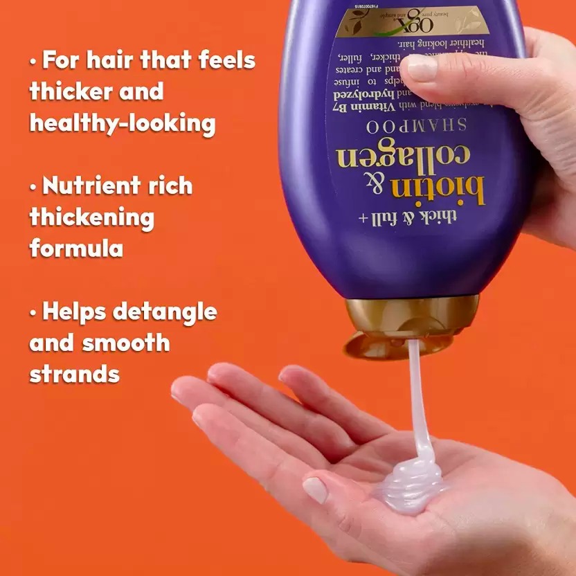 شامپو بیوتین و کلاژن او جی ایکس (OGX Thick & Full + Biotin & Collagen) شامپویی مناسب برای انواع موهاست که میتواند با افزایش رطوبت رسانی و تغذیه موها با کلاژن و بیوتین، زیبایی و لطافت را برای موها به ارمغان بیاورد.