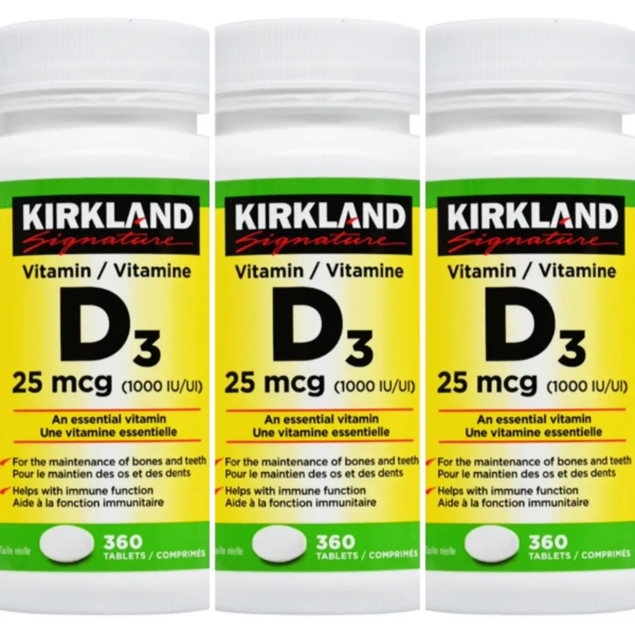 قرص ویتامین D3 کرکلند ۲۵ میکرو گرمی | ۳۶۰ عددی