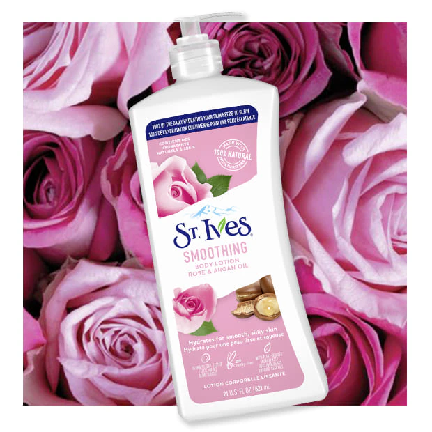 لوسیون بدن نرم کننده گل رز و آرگان سینت ایوز St. Ives Smoothing Lotion Rose & Argan Oil 621ml