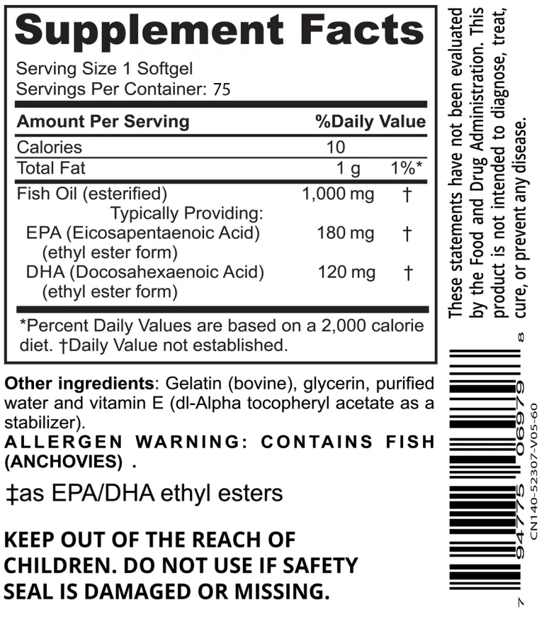 فرمول استریشده (Esterified) باعث جذب بیشتر و خلوص بالاتر EPA و DHA میشود.