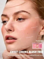 “گونه‌هایی که با عشق نفس می‌کشند! پالت رژگونه ۳ رنگ Sweet Cheeks Enamored شیگلم، با سه طیف رنگی دلربا، به گونه‌های شما جان می‌بخشد. رنگ دلخواهتان را بسازید، مخلوط کنید و بدرخشید. زیبایی شما، داستانی عاشقانه است!”