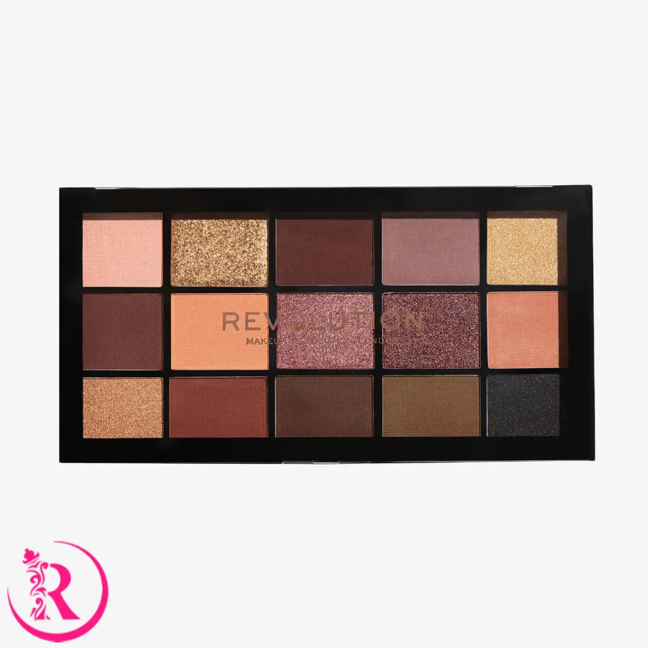 پالت سایه چشم رولوشن مدل ولوت رز (Makeup Revolution Reloaded Velvet Rose) یکی از پرفروشترین و محبوبترین پالتهای آرایشی این برند انگلیسی است که با ۱۵ رنگ متنوع، انتخابی فوقالعاده برای میکاپ روزانه تا حرفهای محسوب میشود. رنگهای این پالت از طیفهای گرم و خنثی گرفته تا سایههای طلایی و برنزی درخشان را شامل میشوند و همین تنوع، آن را به گزینهای کاربردی برای انواع سبکهای آرایش چشم تبدیل کرده است.