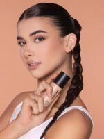 ۲. مقدار کمی از کرم پودر را با براش، اسفنج یا انگشت روی پوست بزنید.