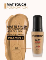 کرم پودر Mat Touch Foundation شماره M305 از برند فلورمار، یک کرم پودر مایع با جلوه مات و طبیعی است که برای افرادی طراحی شده که به دنبال پوستی یکدست، بدون براقیت و با پوششی ماندگار هستند. این کرم پودر با بافت سبک خود، به راحتی روی پوست پخش می‌شود و ظاهری طبیعی و حرفه‌ای ایجاد می‌کند. شماره M305 تناژی گرم و متوسط دارد که برای پوست‌های گندمی تا متوسط بسیار مناسب است.